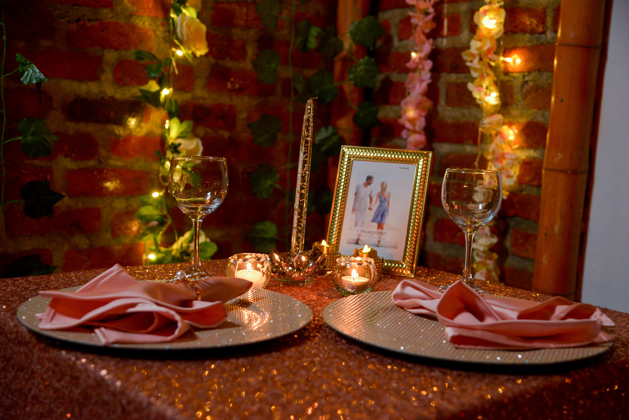 ✅ espejo iluminado con el mensaje pequeño que desees dedicarle junto a la mesa donde cenaran.